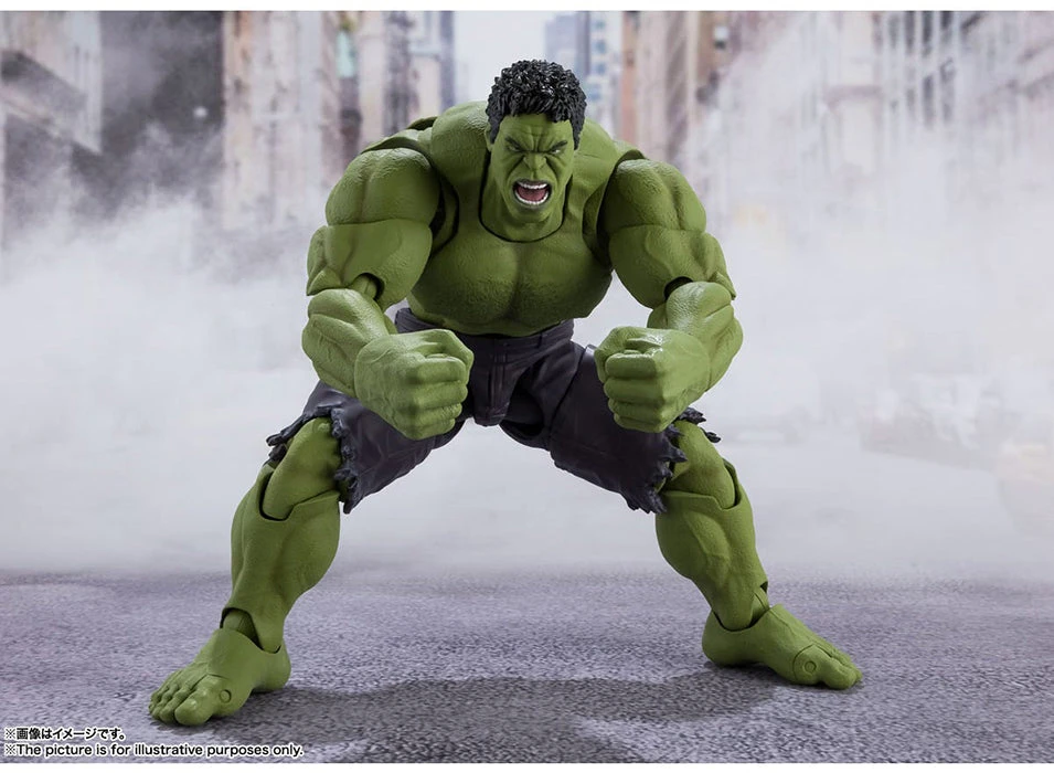 Description: Hulk smash! The Incredible Hulk, as seen in the Avengers films, joins S.H.Figuarts with a completely new sculpt. Powerful musculature is captured with cutting-edge posing technology. Digital coloring faithfully captures his appearance and facial features. The Avengers assemble when you combine Hulk with the other heroes (sold separately)! [Set Contents] Main body, Two optional heads, Two pairs of optional hands.