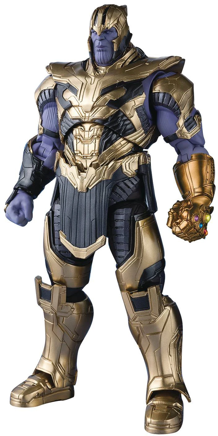 Description: The Dark Lord who menaces humanity’s most powerful heroes joins S.H.Figuarts, featuring his appearance from the film Avengers: Endgame. He has been sculpted in a distinctively larger size so that you can feel his power in comparison to standard-sized characters. The set includes the figure, two pairs of optional hands, a weapon, and two optional face parts.