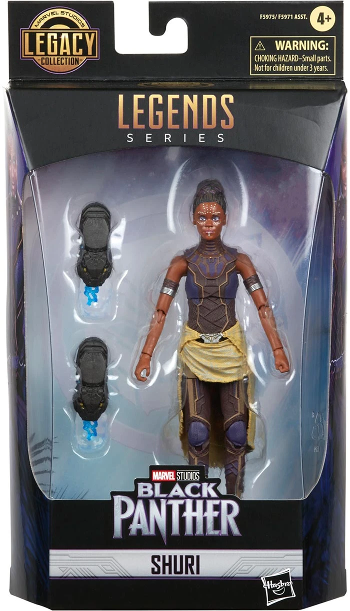 PREMIUM FEATURES AND ACCESSORIES: This 6-inch Legends Series Shuri figure features movie-accurate deco and detailing and includes her signature vibranium gauntlet weapon accessories!