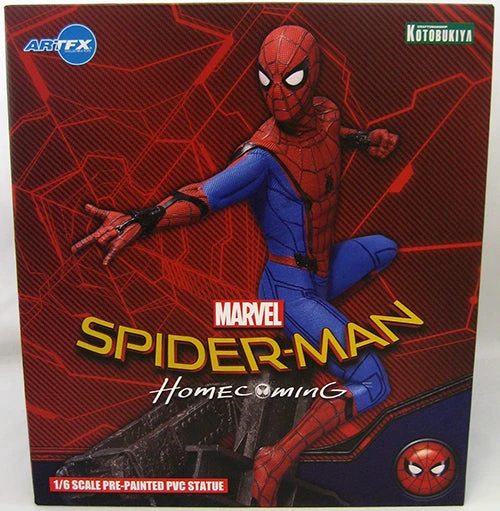 Description: From Kotobukiya. The long-awaited Spider-Man is finally making his homecoming! After his reboot in Marvel Studios’ 2017 summer blockbuster, Spider-Man: Homecoming, the popular rookie hero is making his way to Kotobukiya’s ARTFX series of 1/6 scale figures!